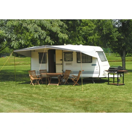 Tendalino roulotte realizzato in tessuto poliestere 100%. La particolarità di questo tendalino caravan è nel materiale utilizzato, che garantisce una buona resistenza all’usura nel tempo. Tra gli accessori per roulotte, questo tendalino per roulotte risulta ideale per il campeggio itinerante grazie alla praticità d’impiego.
